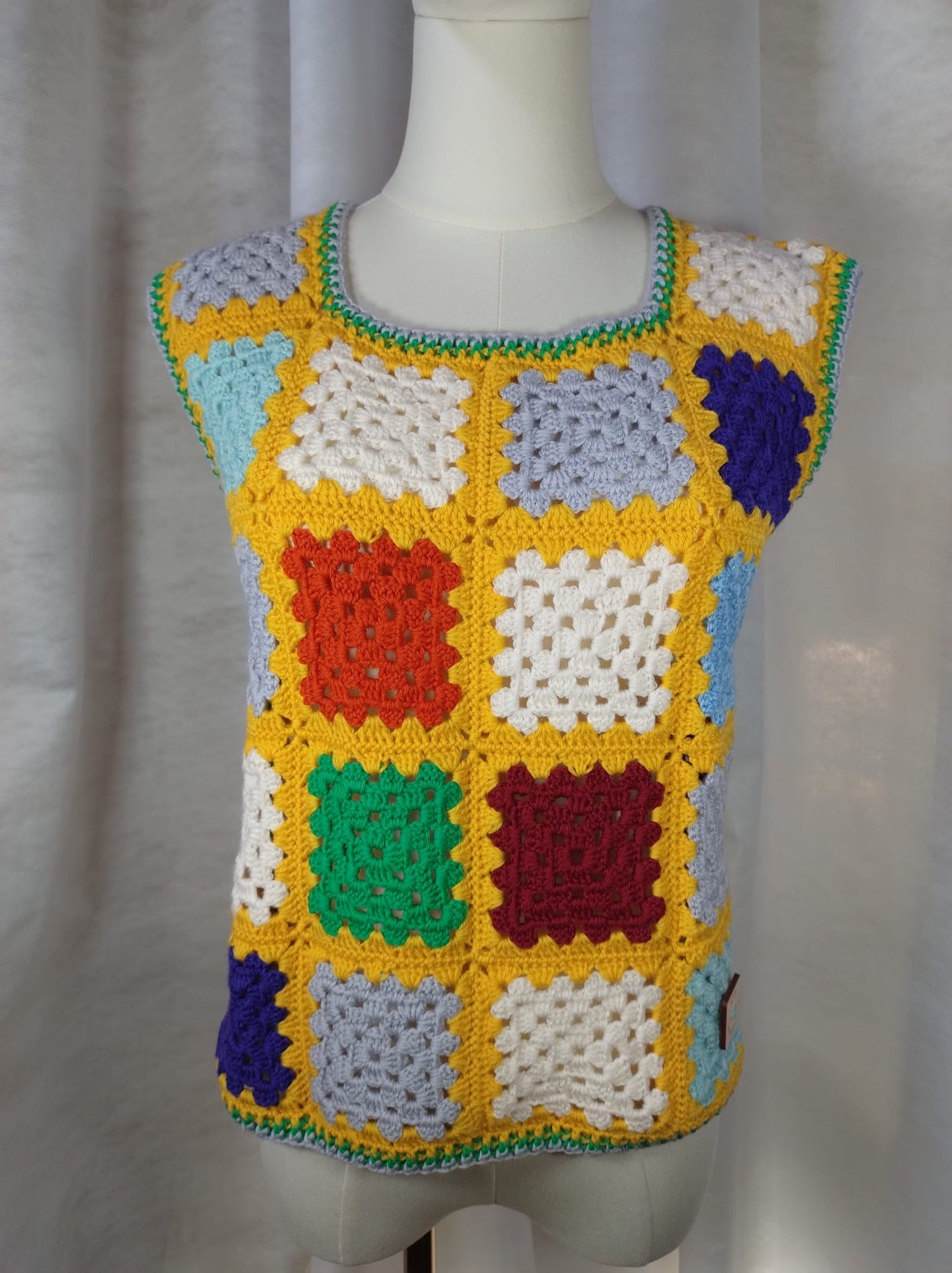 Aggiungi un tocco di calore e allegria al tuo stile con 'Gil il gilet all’uncinetto'. Ordina ora per un look unico e confortevole!
