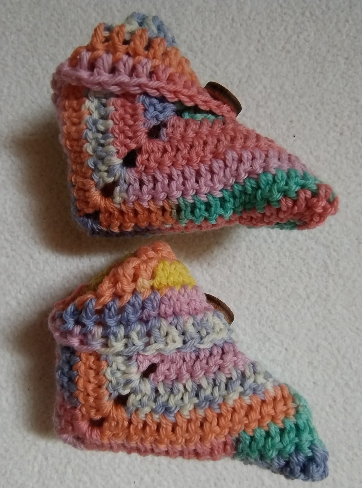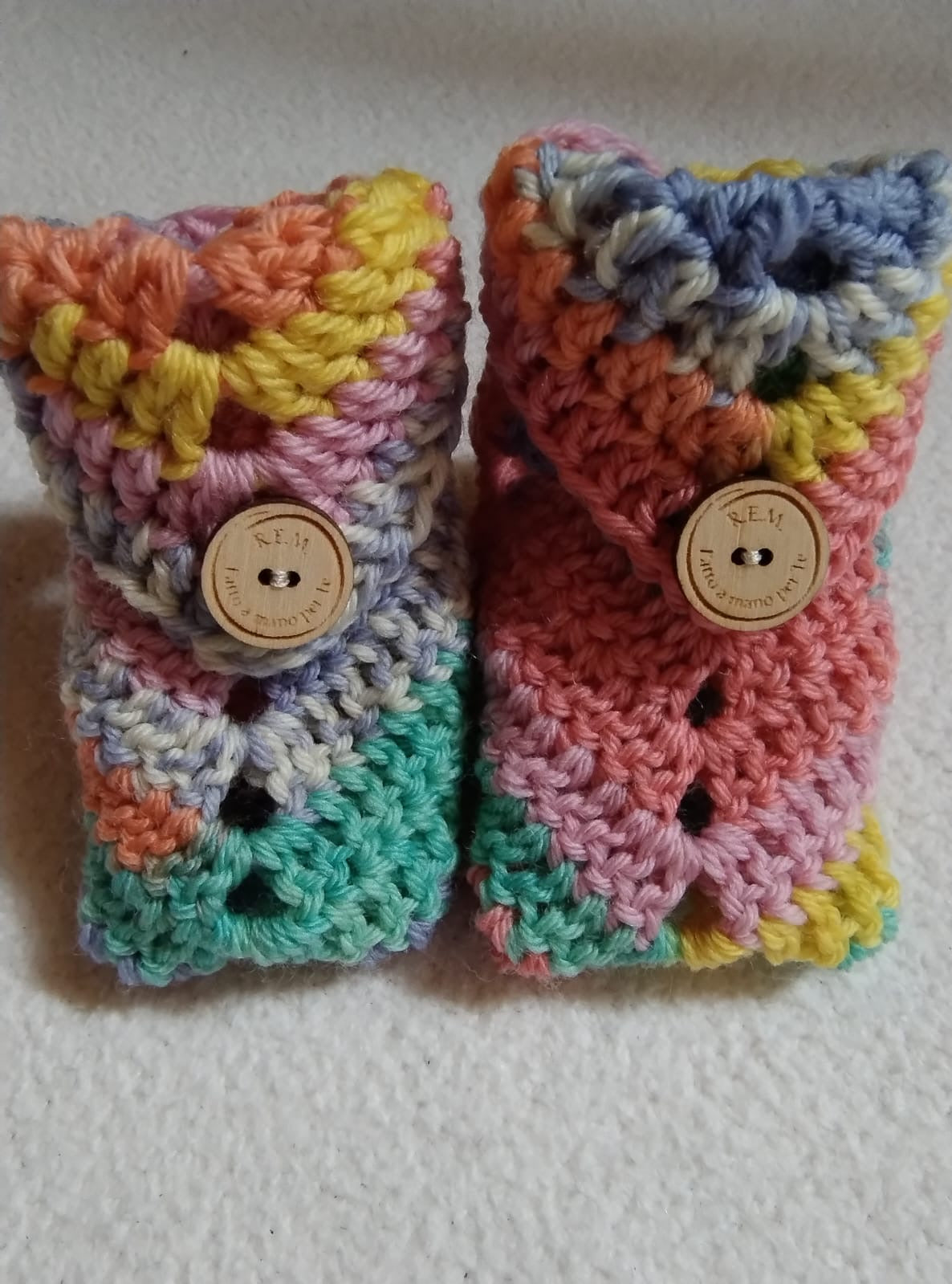 La tecnica all'uncinetto, utilizzando il punto piastrella "America", dona alle scarpine 'Giusine' una texture ricca e un design accattivante, rendendole un accessorio distintivo nel guardaroba del tuo neonato. Progettate per la comodità dei bambini di età compresa tra 0 e 3 mesi, queste scarpine offrono una vestibilità sicura e confortevole, perfetta per i primi mesi di esplorazione.