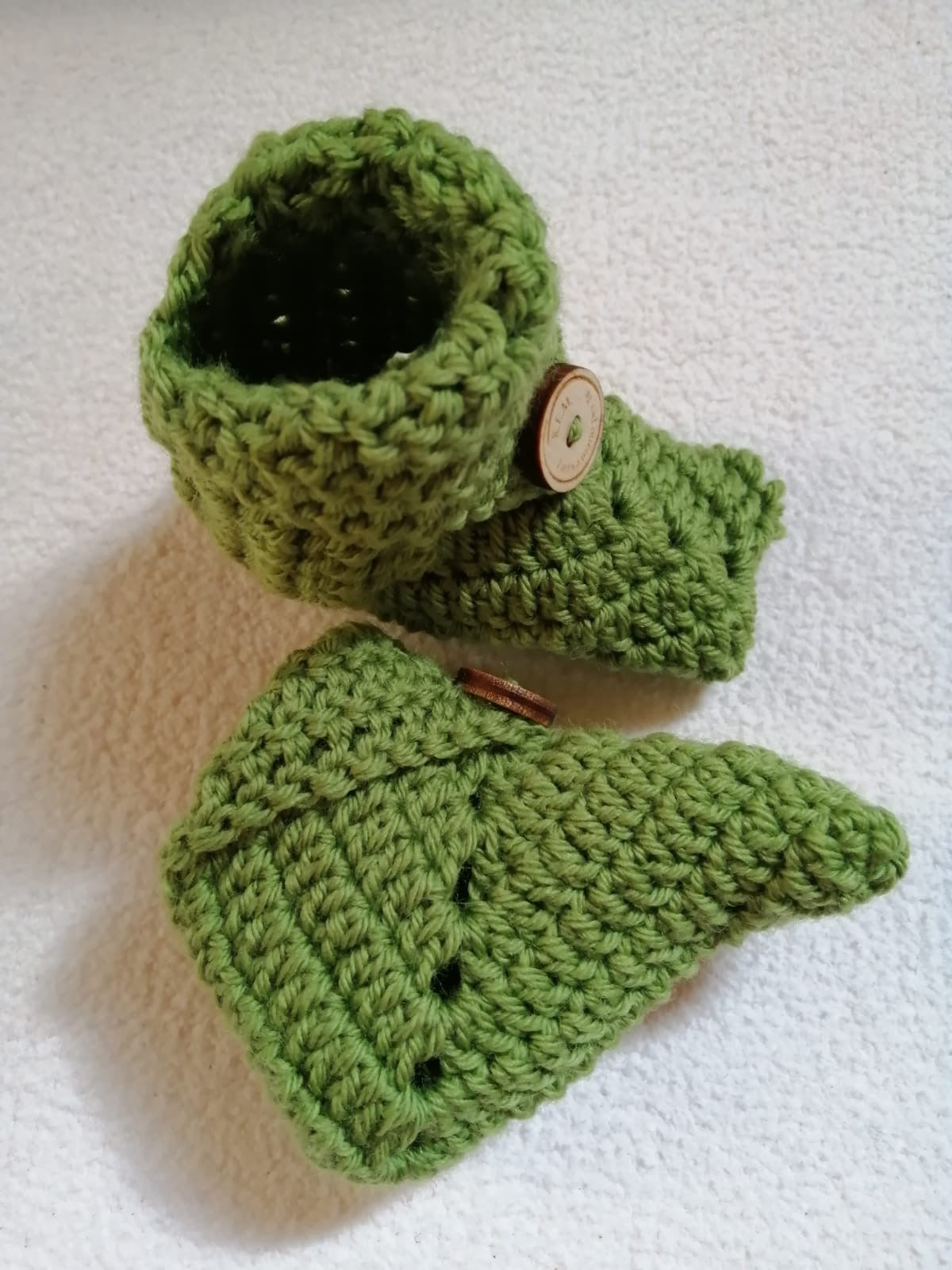Le scarpine neonato 'Giusine' sono il simbolo di cura e amore per i più piccoli. Realizzate artigianalmente con la pregiata lana merino Mistral della filatura Sesia, queste scarpine non solo garantiscono calore e morbidezza ai piedini delicati dei neonati ma aggiungono anche un tocco di eleganza e vivacità con il loro splendido colore verde.