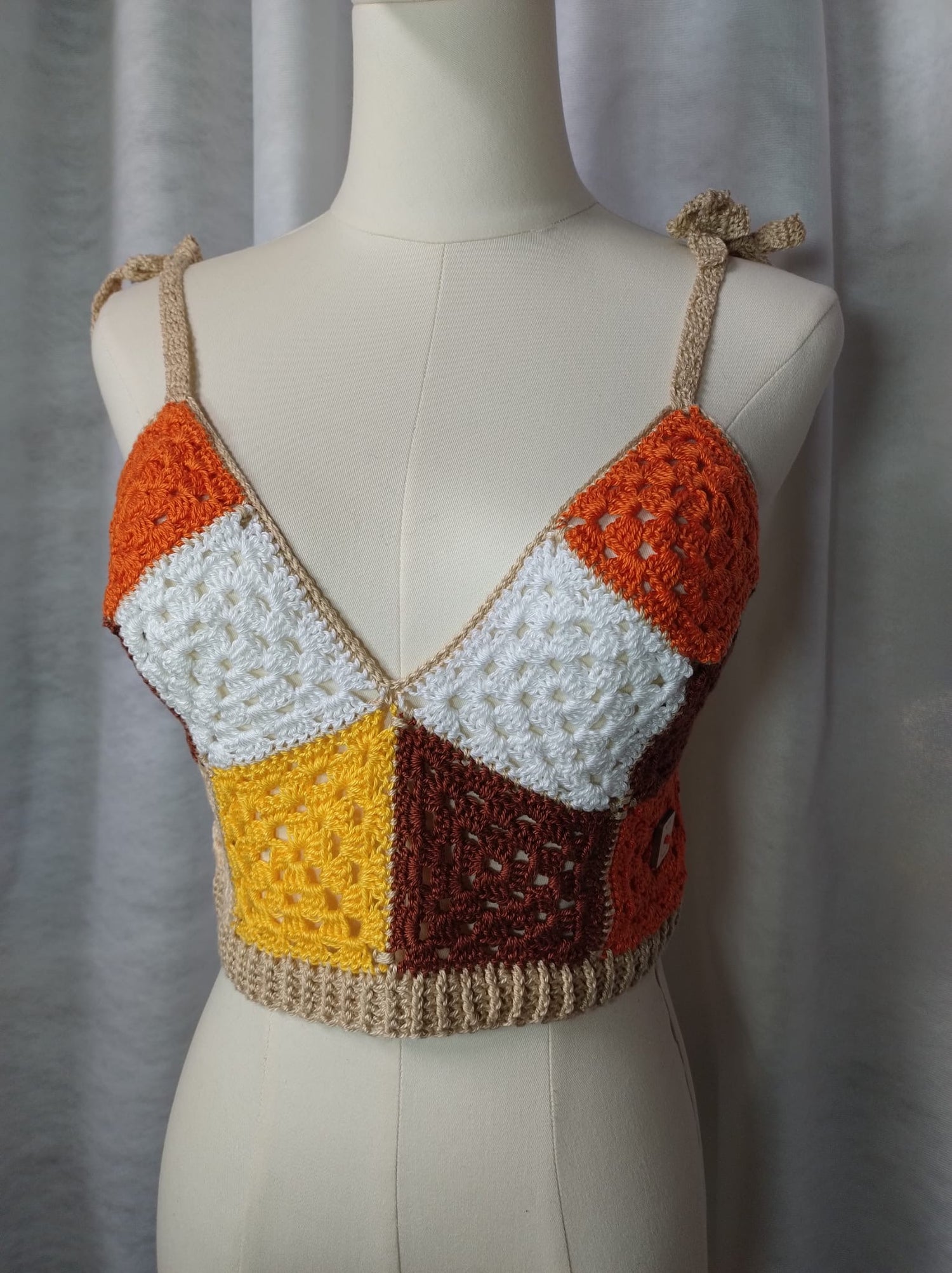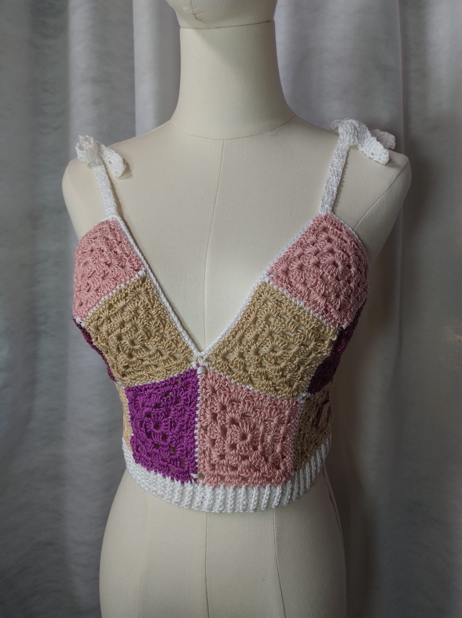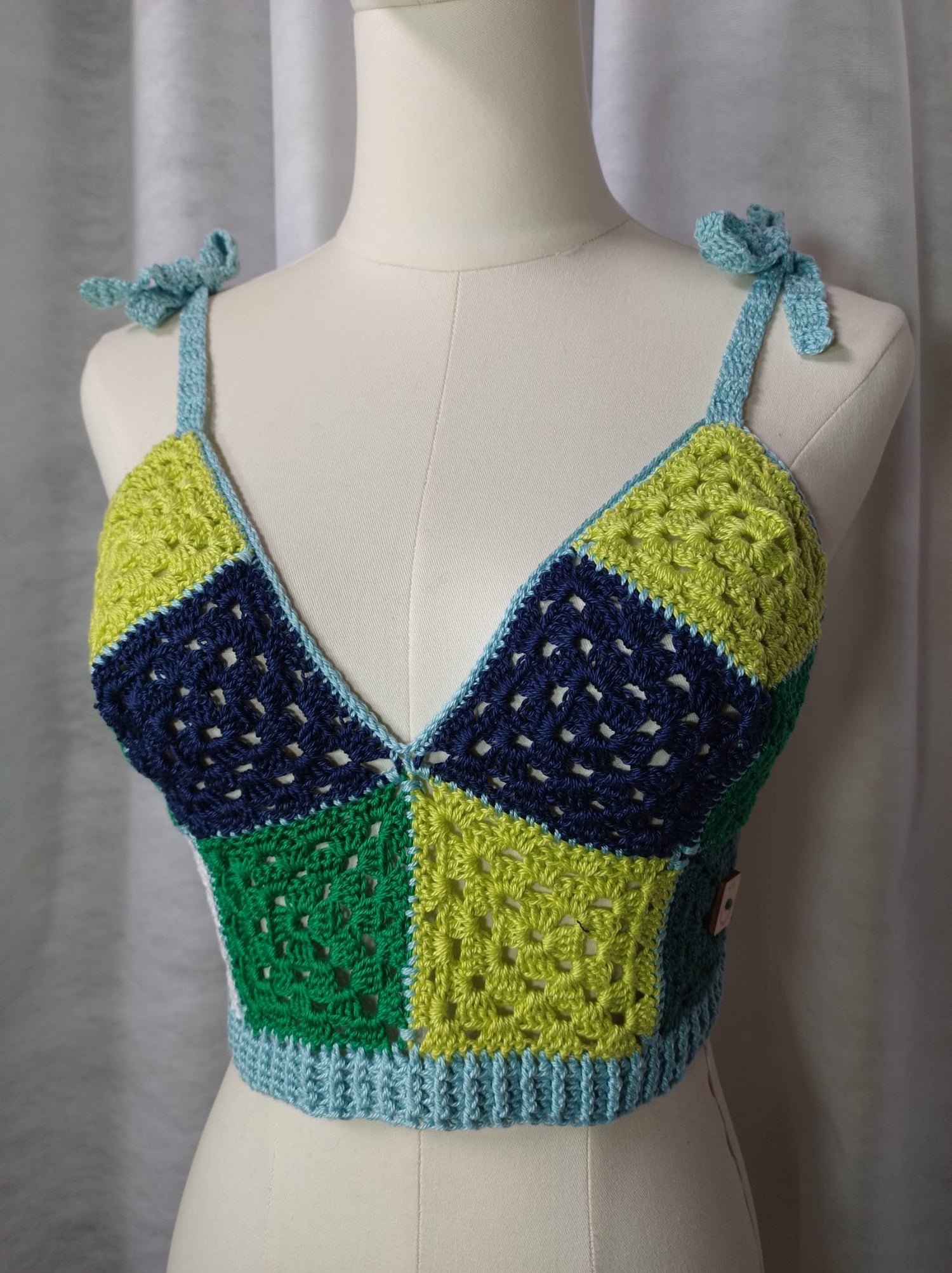 - Lavorazione all'Uncinetto a Mano: Ogni top 'Ted' è unico, con un'intreccio di colori e creatività.